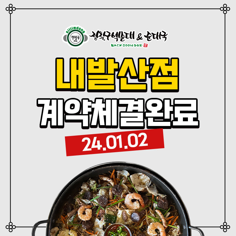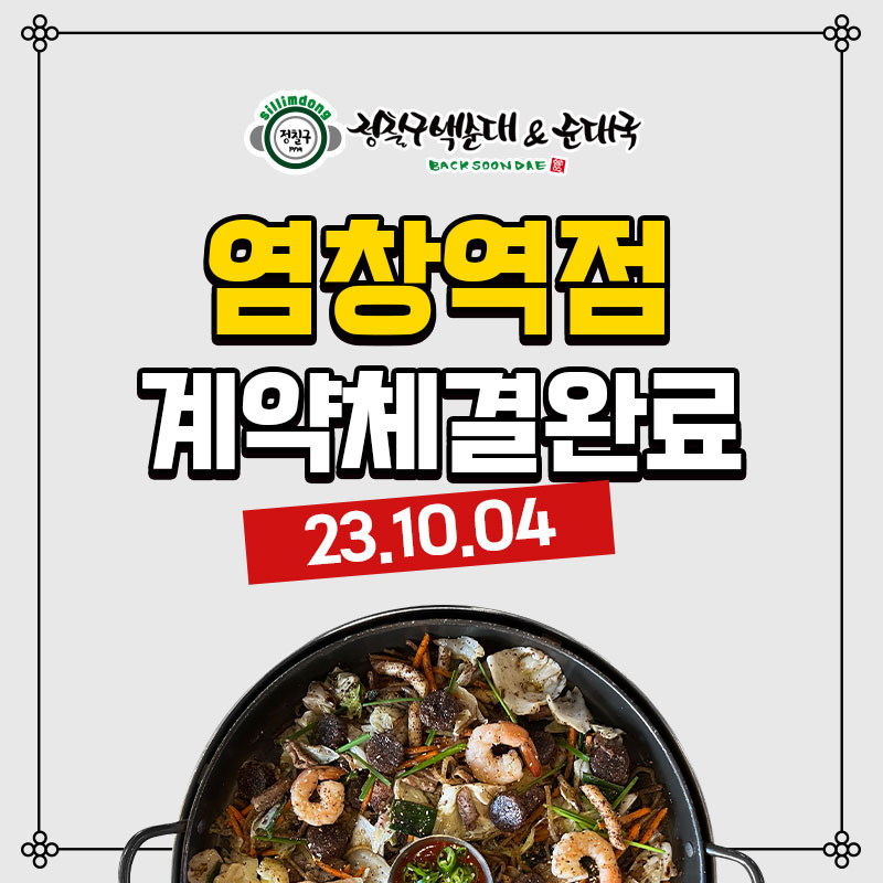 정칠구백순대&순대국염창역점계약체결완료[계약체결일]2023.10.04[매장(예정)주소]서울 양천구..