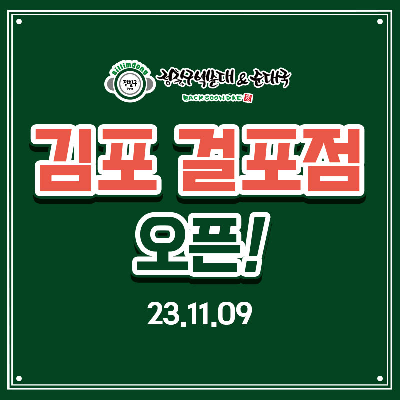 정칠구백순대&순대국김포 걸포점 오픈![오픈일자]2023.11.09[매장주소]경기 김포시 걸포2로..