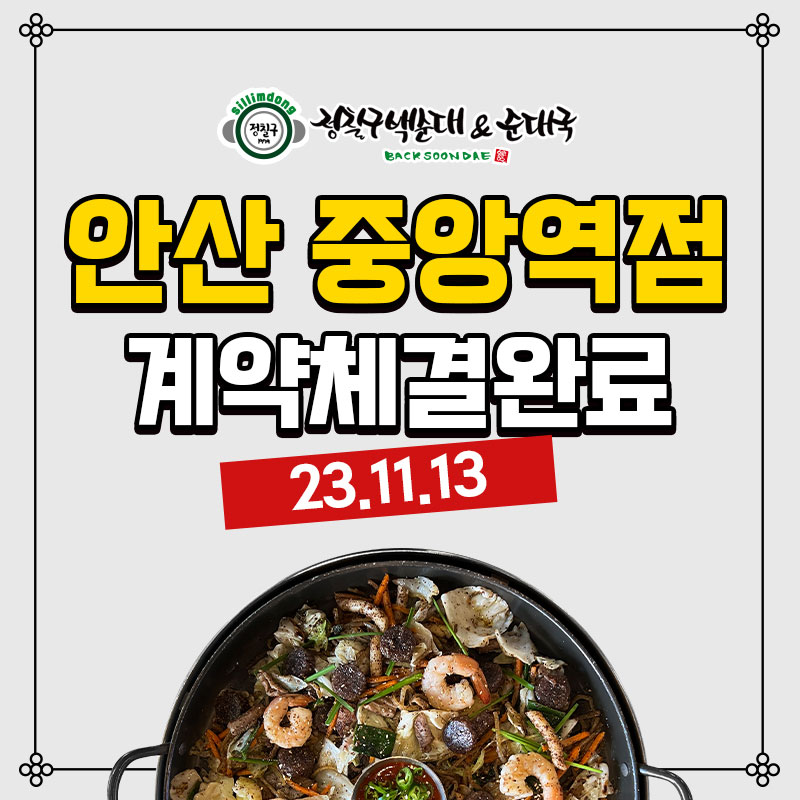 정칠구백순대&순대국안산 중앙역점계약체결완료[계약체결일]2023.11.13[매장(예정)주소]경기 ..
