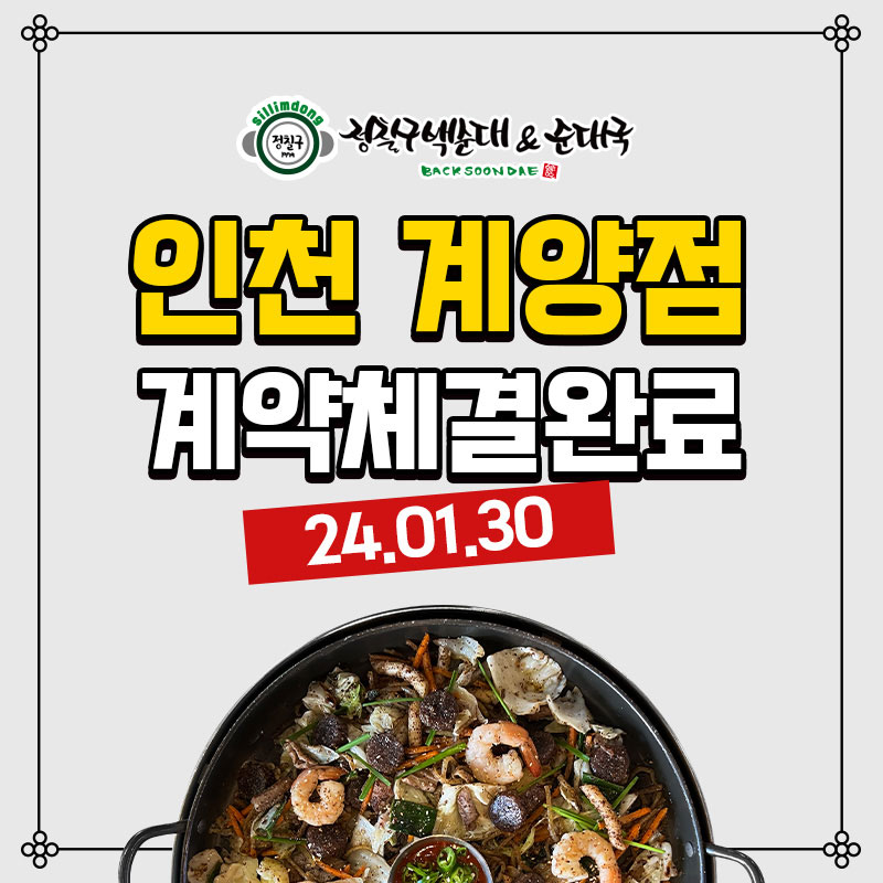 정칠구백순대&순대국인천 계양점계약체결완료[계약체결일]2024.1.30[매장(예정)주소]인천 계양..