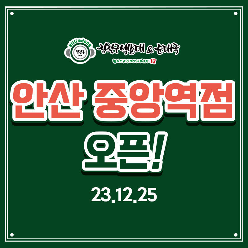 정칠구백순대&순대국안산 중앙역점 오픈![오픈일자]2023.12.25[매장주소]경기 안산시 단원구..