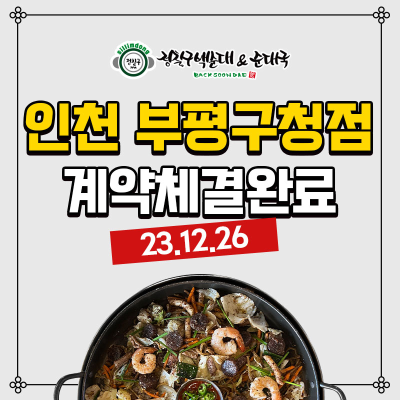정칠구백순대&순대국인천 부평구청점계약체결완료[계약체결일]2023.12.26[매장(예정)주소]인천..